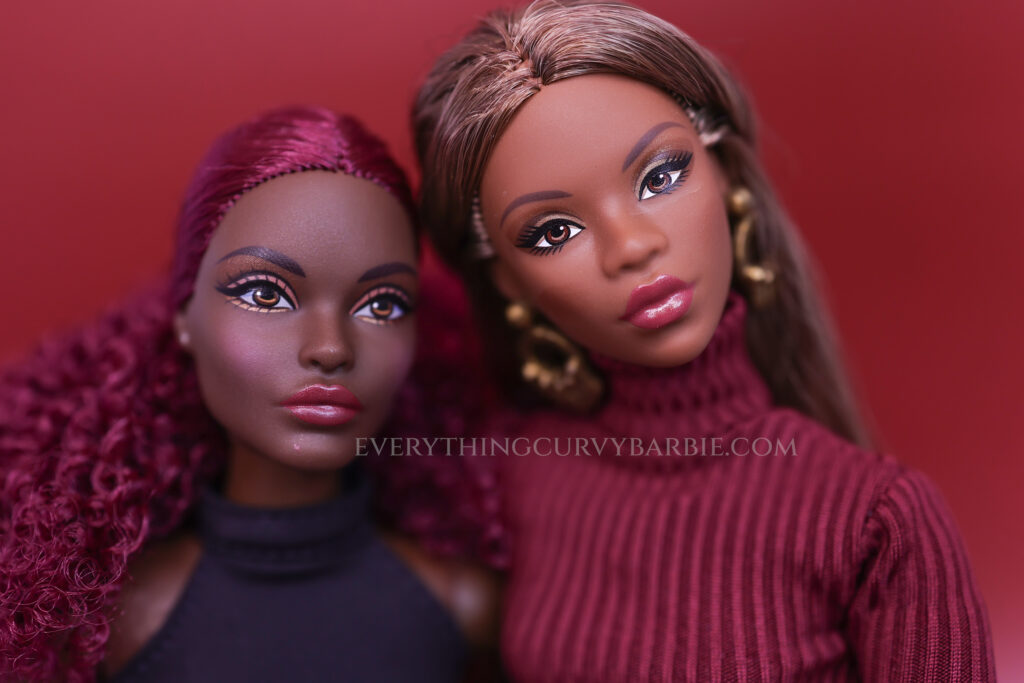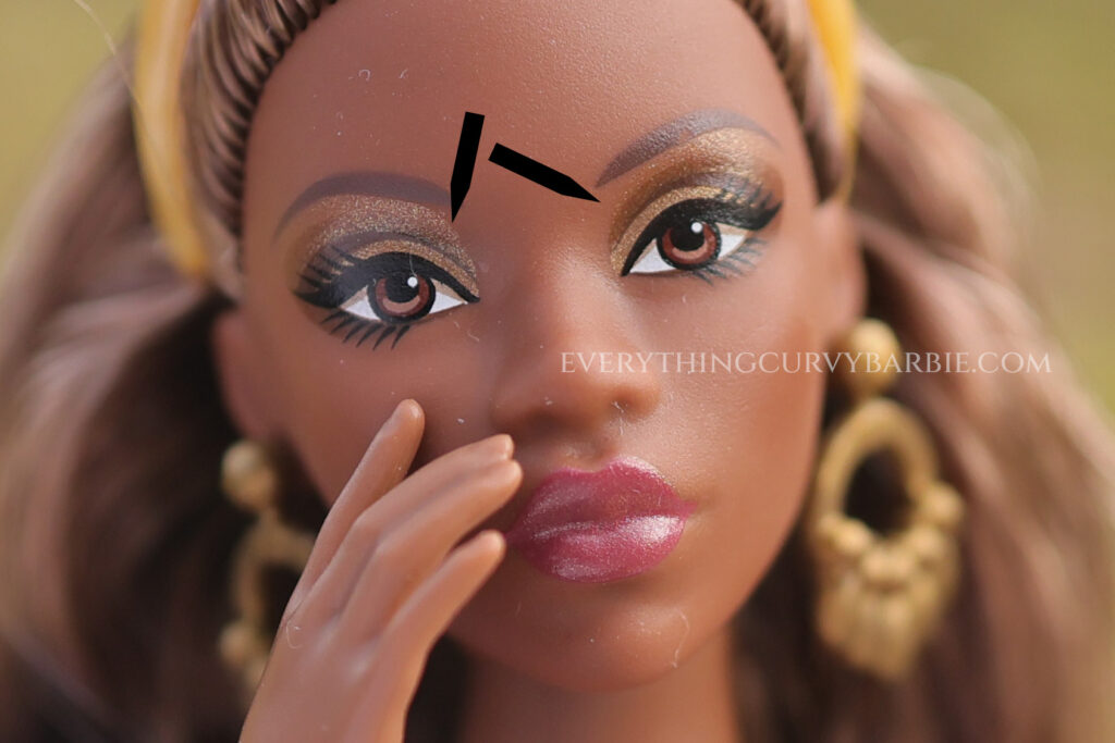 At first glance, these dolls are undeniably stunning. The rich brown skin tone, the soft long hair, and the classic Made to Move Curvy body make them very appealing additions to any curvy collection. However, once you start examining them up close — especially under good lighting and from different angles — some clear factory issues become visible.