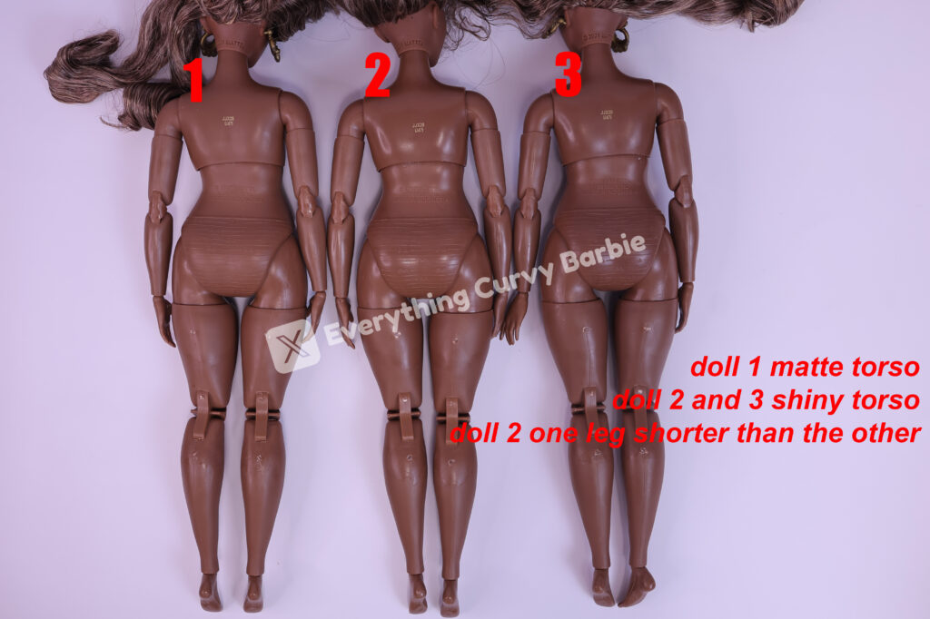 • Dolls 2 and 3 have a shinier, more plastic-looking finish on the torso and upper thighs. It’s subtle in photos but very obvious in person — almost like two different production batches. Matte feels more premium!